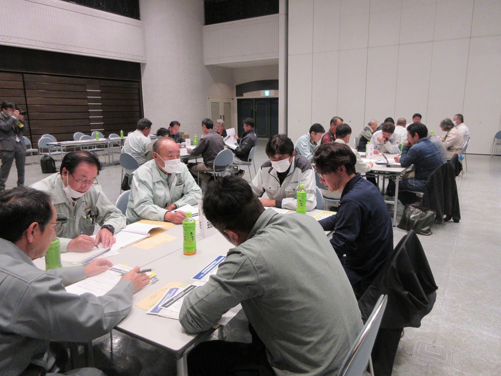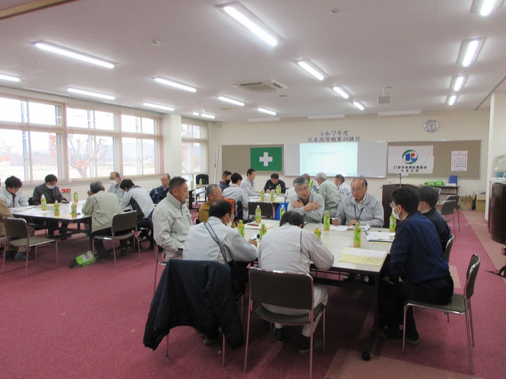 研修会では、花巻労働基準監督署から「労働災害の発生状況」「第14次労働災害防止計画」について説明を受けた後、7つの班に分かれグループ討論を行いました。