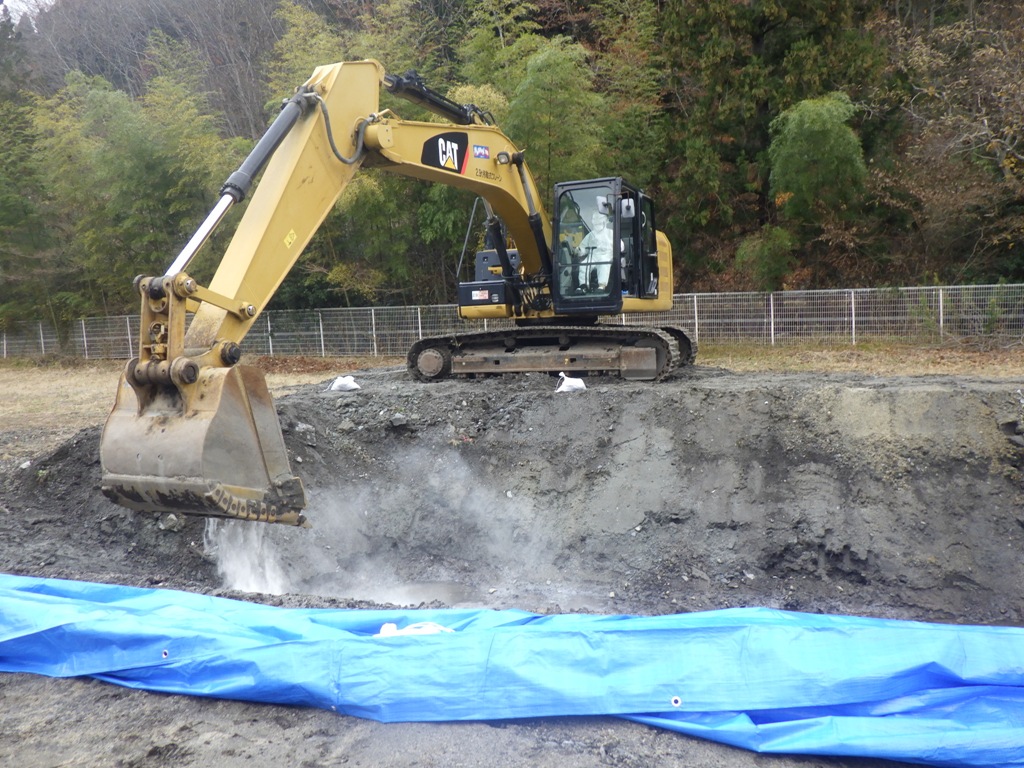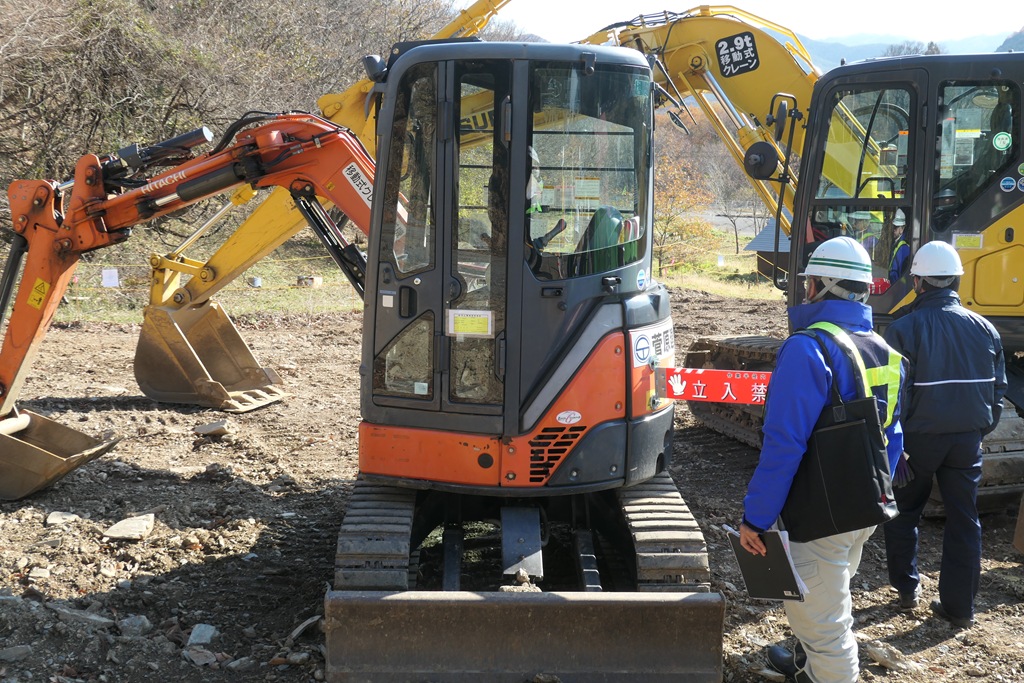 カラフルなヘルメットをかぶり運転席に座った子どもたちは、普段はなかなか乗ることのできない建設機械を前に支部会員のサポートを受け、目を輝かせながらレバーを動かしていました。