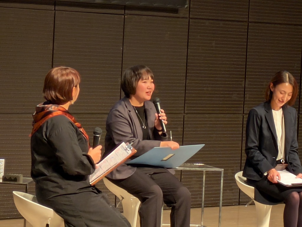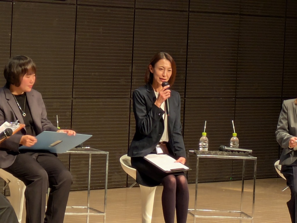 「ホントのところどうなんですか?」、「働く環境について」、「意外と最先端 いわての建設業」、「建設業で働いてよかったなぁ」のテーマでパネルディスカッションを行いました。〔主催者あいさつ〕
