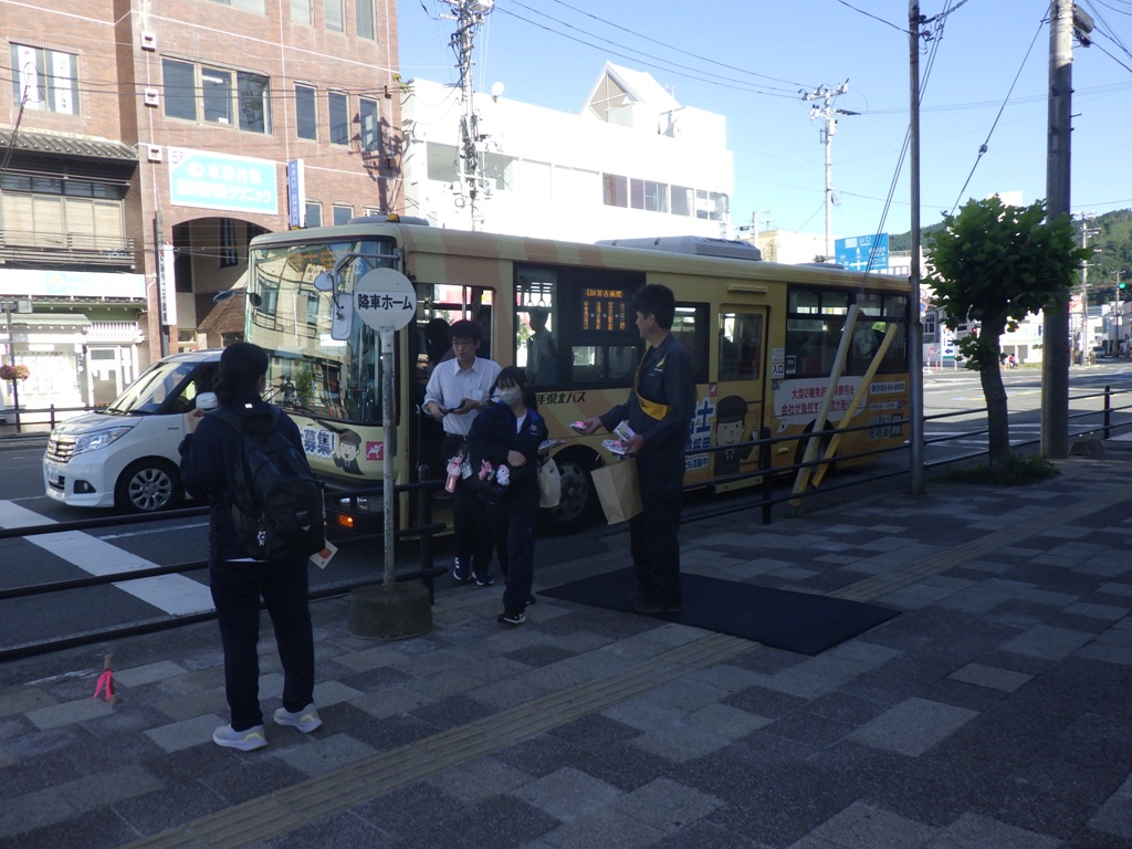 女性協議会では「道の日」のPRとして、ウエットティッシュを合計210個配布しました。