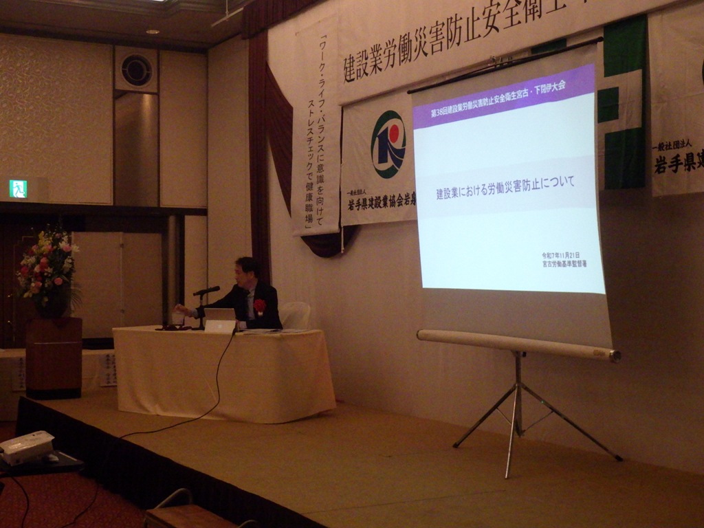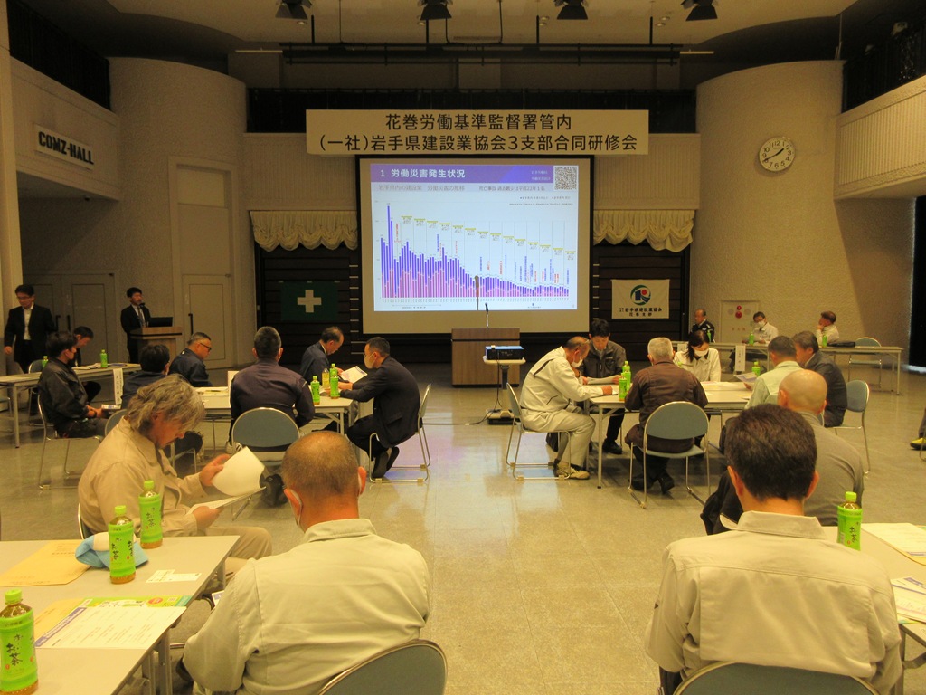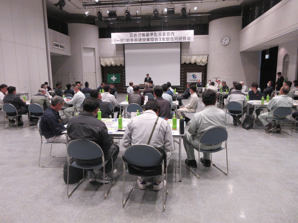 10月14日(火)花巻労働基準監督署と県建設業協会花巻・北上・奥州の3支部により、労働災害防止にかかる合同の研修会を開催しました。
