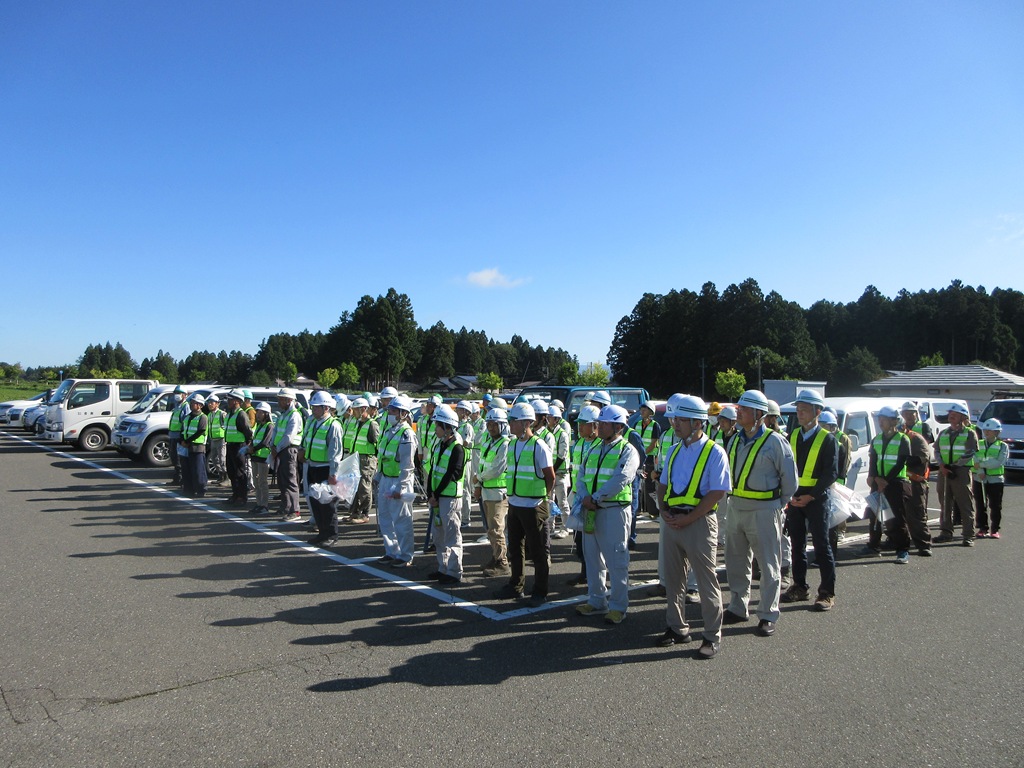 朝から小雨が降るあいにくの天気でしたが、県南広域振興局土木部一関土木センター、一関市、平泉町、一関支部会員あわせて52名が参加し、支部管内の主要道路で清掃活動を行いました。