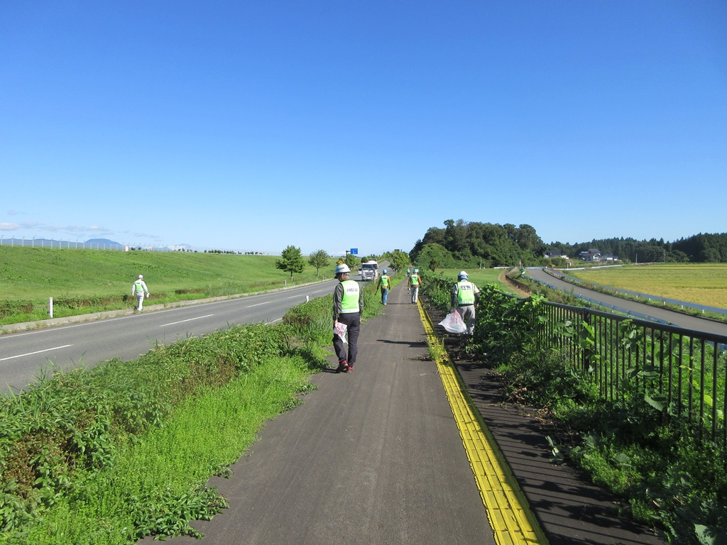 8月10日の「道の日」を前に、8月6日(火)、第24回目となる道路清掃活動「黄金ロードふれあい作戦」を実施しました。