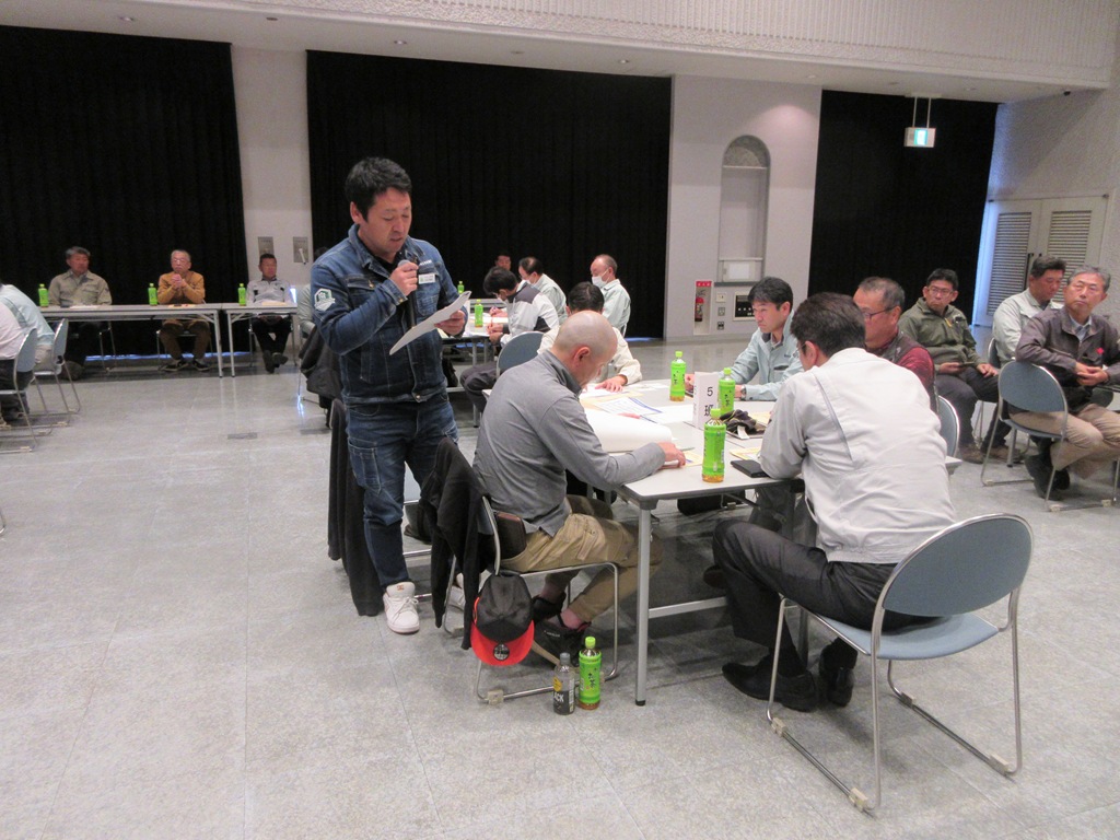 「リスクアセスメントの取組み」「自社の安全衛生活動の取組み」「安全管理について確認したこと」を討論し、各班からテーマごとに出された事例を発表して、安全管理についての意識を共有しました。