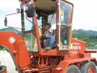 (1)生徒の体験乗車(建設機械とのふれあい)