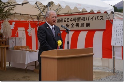 県南広域振興局 遠藤達雄局長、一関市 勝部修市長、実行委員会 岩渕健治 代表が挨拶で、安全施工はもとより、室根バイパスの重要性、住民の思いなどを話しました。