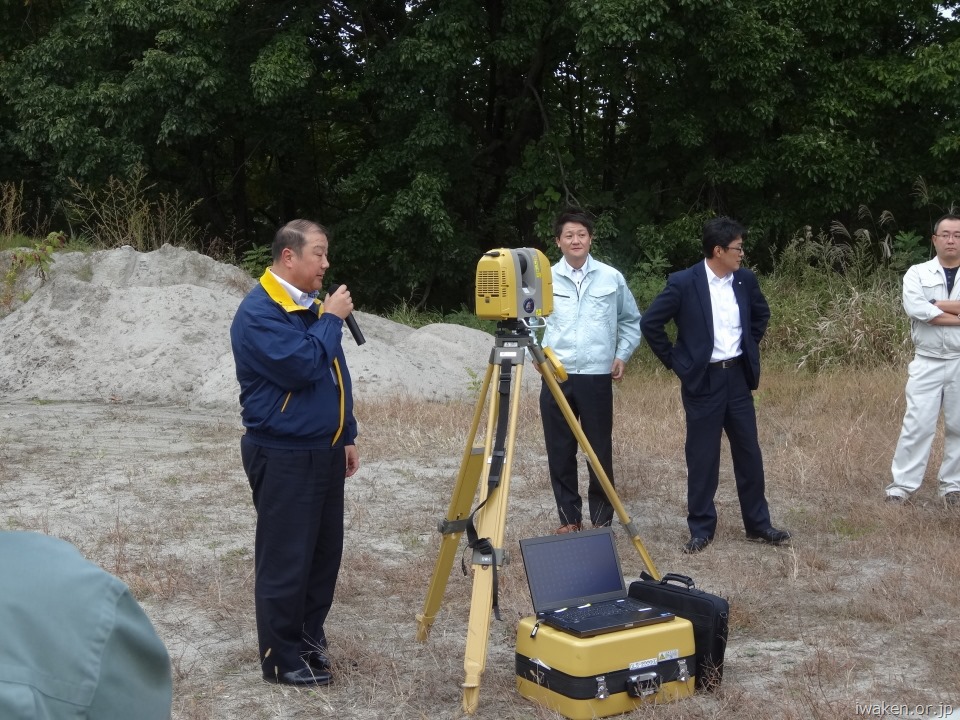 10月20日、国土交通省ICT活用工事におけるICT建機の現場見学会が千厩支部管内で開催されました。9月6日には、国土交通省ICT活用工事で県内初となるUAV(ドローン)による3次元航空起工測量の見学会が実施された現場です。
