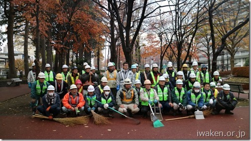千厩支部では、安全パトロールに建設業労働安全衛生マネジメントシステム(COHSMS:コスモス)の柱であるリスクアセスメントを取り入れています。今回は「外部足場解体」及び「掘削積込み運搬」についてリスクアセスメントを実施しました。和賀川河川敷の清掃活動