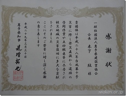 東日本大震災から、6年がたちました。岩手県建設業協会といたしましては、震災の記憶を風化させることなく、災害への対応力を維持・向上していくために、毎年3月11日を「防災の日」と定め、訓練を実施しております。