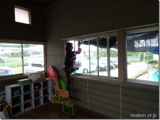 女性MS =放課後等デイサービス『リトル・ピース』で窓ふき作業を実施=