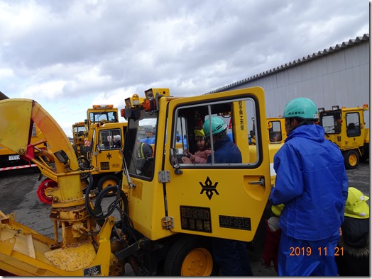 除雪車は、もみじ保育園の3歳児20名に見送られ、轟音を立てて出発していきました。