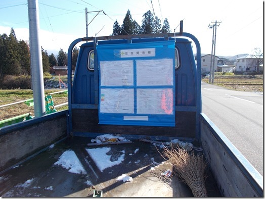 (良い事例)トラックの荷台にも安全掲示板を設置。誰でも目につくように工夫。