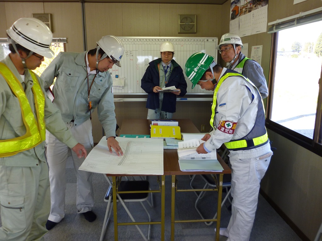 パトロールの後、北上地区合同庁舎において検討会を実施し、それぞれの現場の状況を検証しました。多くの人の様々な視点で捉えた良い取り組み事例、要改善事項を共有することで安全対策の向上につなげることにしました。