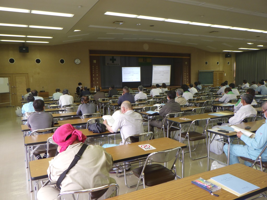 東北地方整備局企画部の講義に、参加者は熱心に耳を傾け保安施設の設置基準や事故事例を学び、今後の作業に大いに参考となったようでした。本講習会でもコロナ対策として、手指消毒・マスク着用・検温・1テーブル1名の千鳥着席・窓開など多くの対策を講じて開催となりました。