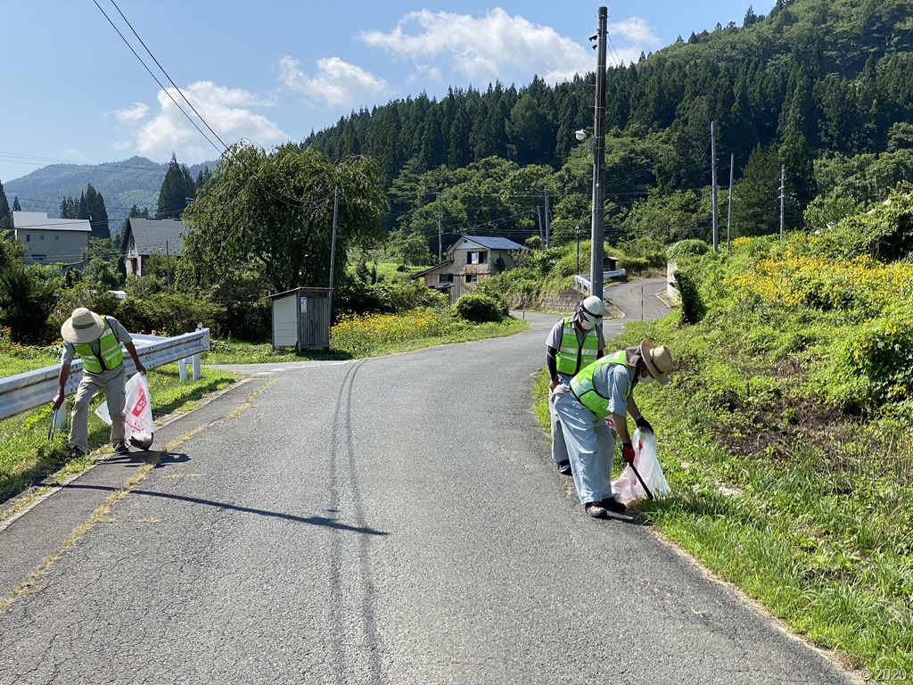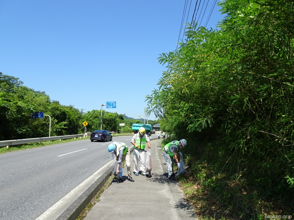 道路ふれあい月間中の8月5日、「道の日」イベントとして道路清掃や道路のPR活動等を実施しました。県南広域振興局土木部千厩土木センター、一関市、岩手県建設業協会千厩支部青年部会、岩手県建設業女性協議会千厩支部から約70名が参加しました。一関市川崎町「道の駅かわさき」、室根町「道の駅むろね・市役所室根支所」、東山町「ひがしやま季節館」の3会場に別れ、沿道のゴミ拾いを行いました。