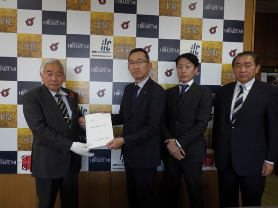 一関支部は同日、平泉町を訪れ青木町長へ要望、①公共事業関係予算の確保、②公共工事発注の平準化及び適正な工期の設定を要望、③除雪業務委託の3項目を要望提出いたしました。