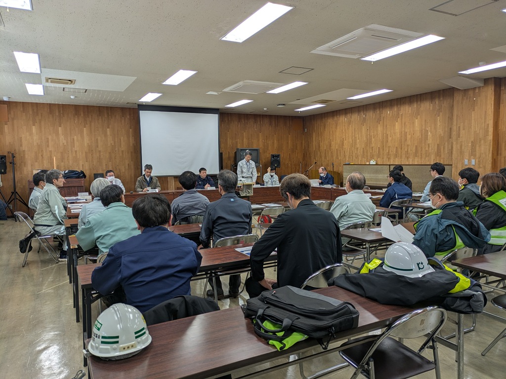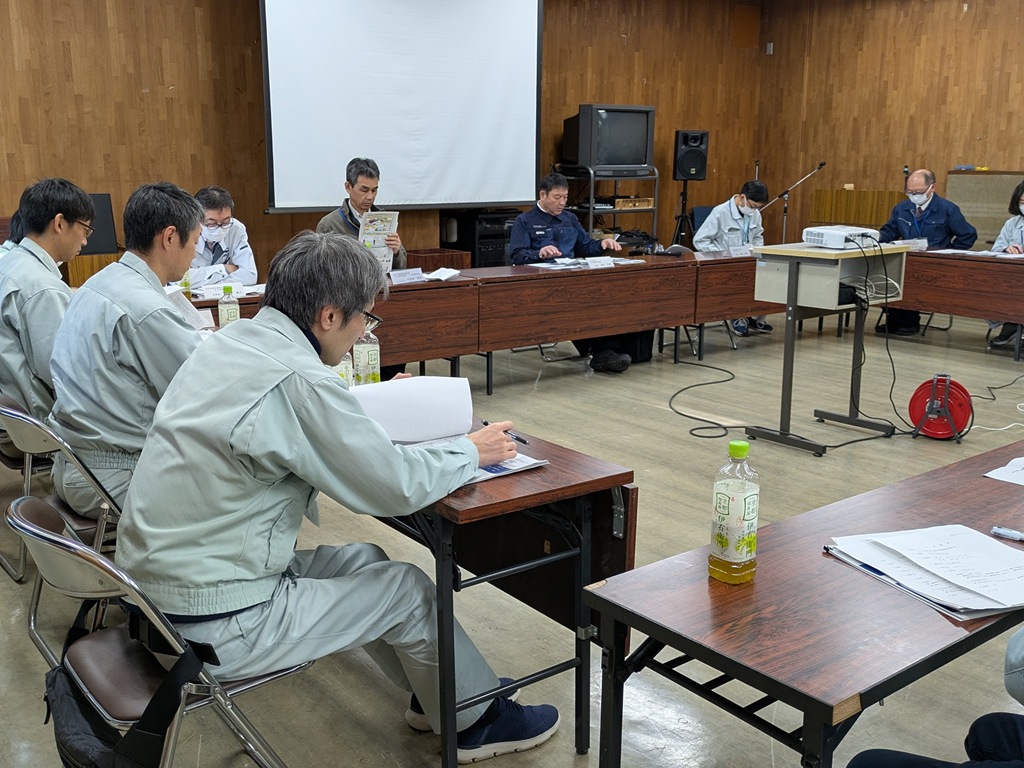 検討会では、各現場の改善事項などについて意見を出し合い、点検表の取りまとめを行いました。また、検討会終了後には、花巻労働基準監督署渡辺幸輝 署長から「建設業における労働災害の防止について」の講和をいただき、安全管理の徹底を確認しました。
