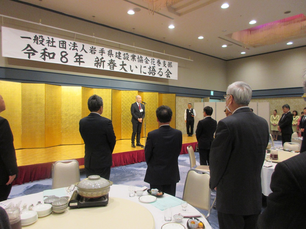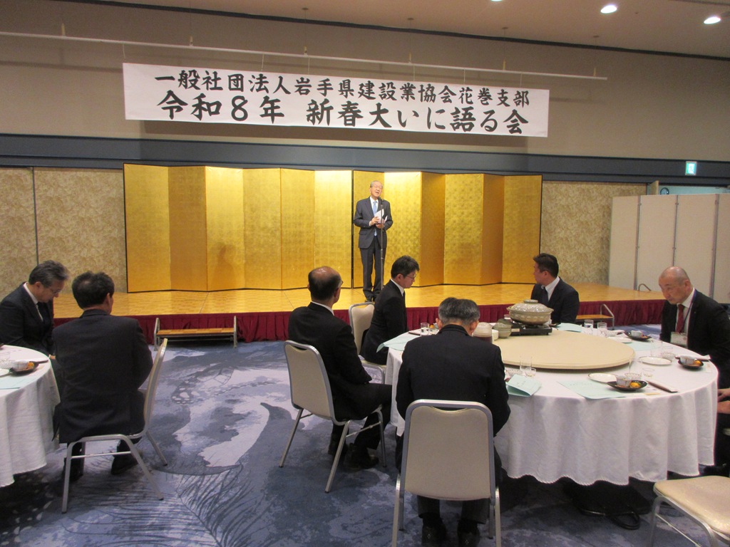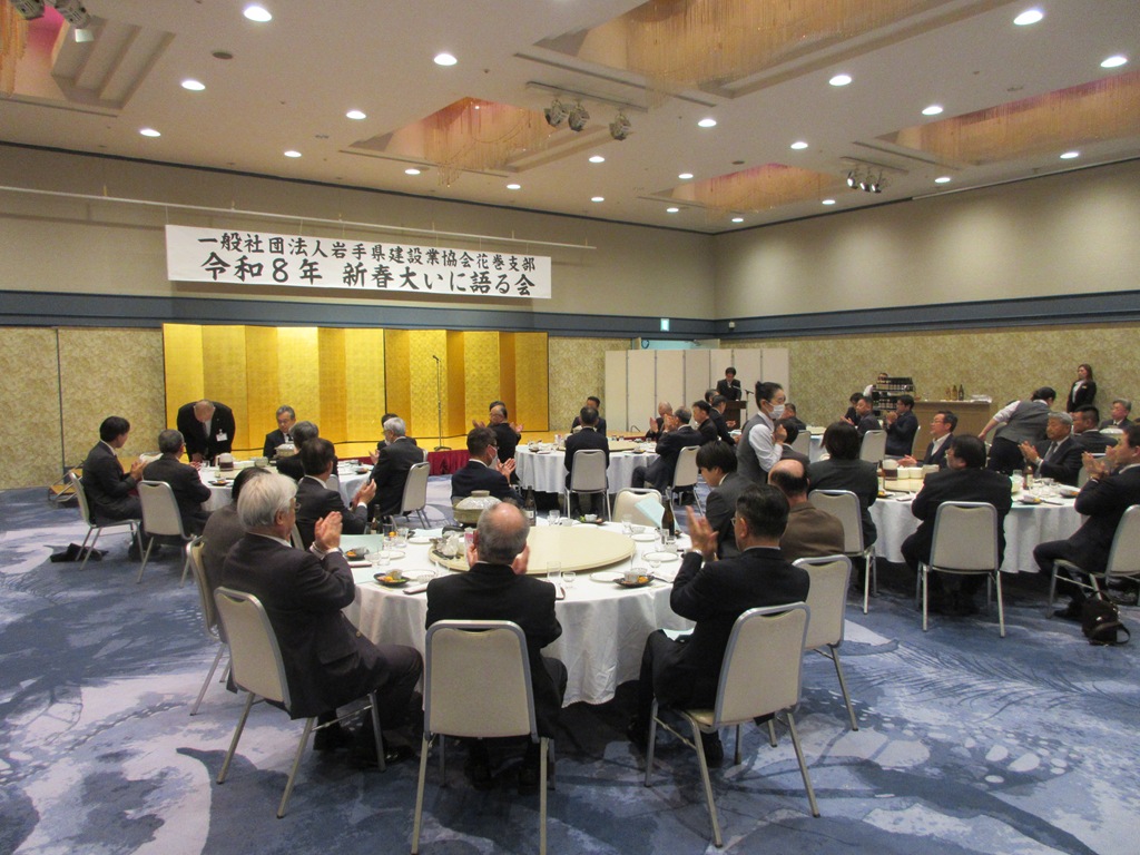 いわけんブログ ホームいわけんブログ「新春大いに語る会」を開催 ≪ 前のエントリー 「新春大いに語る会」を開催 2026年2月24日花巻支部 2月20日(金)花巻支部の「新春大いに語る会」を市内ホテルで開催しました。当日は、1月25日当選した小原勝花巻市長を始め、来賓の方々から新春を迎えての展望や抱負を語っていただきました。当日の出席者は来賓・会員含め50名の盛大な新年会となりました。 ブログ内検索 最近の記事 「新春大いに語る会」を開催 現場安全パトロール実施 除雪ボランティア活動を実施 上級編に引き続き除雪オペレータ―育成に向けた除雪訓練(初級編)を実施しました 除雪オペレータ―育成に向けた除雪訓練(上級編)を実施しました 建設業担い手育成イベント「乗ってみよう はたらくクルマ」を開催 「建設キャリアアップシステム通信」第7号 第2回現場合同安全パトロール実施 令和7年度盛岡支部安全衛生研修会を開催しました 『優良県営建設工事表彰受賞披露祝賀会』『令和8年新年を迎える会』を開催いたしました カテゴリ 岩手県建設業協会 (818) 建設研修センター・建設会館 (59) 建設業労働災害防止協会 (99) 建退共岩手県支部 (90) 建設産業団体連合会 (36) 土木施工管理技士会 (31) 青年部連絡協議会 (23) 岩手県建設業女性協議会 (6) 盛岡支部 (202) 花巻支部 (203) 北上支部 (236) 奥州支部 (124) 一関支部 (270) 千厩支部 (394) 大船渡支部 (174) 遠野支部 (78) 釜石支部 (170) 宮古支部 (230) 岩泉支部 (121) 久慈支部 (158) 二戸支部 (117) 花林舎 (40) コンプライアンス (9) 東日本大震災 (81) 月別アーカイブ 2026年 2月 (8) 1月 (10) 2025年 12月 (21) 11月 (15) 10月 (9) 9月 (8) 8月 (14) 7月 (12) 6月 (14) 5月 (6) 4月 (9) 3月 (10) 2月 (9) 1月 (9) 2024年 12月 (17) 11月 (22) 10月 (17) 9月 (11) 8月 (13) 7月 (8) 6月 (16) 5月 (12) 4月 (6) 3月 (4) 2月 (5) 1月 (11) 2023年 12月 (17) 11月 (16) 10月 (15) 9月 (10) 8月 (18) 7月 (11) 6月 (19) 5月 (11) 4月 (11) 3月 (4) 2月 (5) 1月 (4) 2022年 12月 (18) 11月 (17) 10月 (17) 9月 (13) 8月 (14) 7月 (9) 6月 (18) 5月 (9) 4月 (9) 3月 (5) 2月 (6) 1月 (6) 2021年 12月 (16) 11月 (20) 10月 (12) 9月 (3) 8月 (19) 7月 (13) 6月 (10) 5月 (3) 4月 (6) 3月 (5) 2月 (11) 1月 (5) 2020年 12月 (16) 11月 (21) 10月 (20) 9月 (18) 8月 (23) 7月 (17) 6月 (11) 5月 (6) 4月 (2) 3月 (9) 2月 (8) 1月 (11) 2019年 12月 (9) 11月 (24) 10月 (20) 9月 (10) 8月 (19) 7月 (18) 6月 (9) 5月 (16) 4月 (9) 3月 (9) 2月 (13) 1月 (16) 2018年 12月 (15) 11月 (26) 10月 (18) 9月 (7) 8月 (19) 7月 (25) 6月 (15) 5月 (11) 4月 (13) 3月 (10) 2月 (17) 1月 (10) 2017年 12月 (12) 11月 (17) 10月 (20) 9月 (8) 8月 (28) 7月 (20) 6月 (14) 5月 (14) 4月 (18) 3月 (20) 2月 (18) 1月 (16) 2016年 12月 (19) 11月 (22) 10月 (16) 9月 (33) 8月 (23) 7月 (23) 6月 (17) 5月 (20) 4月 (25) 3月 (20) 2月 (16) 1月 (13) 2015年 12月 (20) 11月 (21) 10月 (27) 9月 (10) 8月 (22) 7月 (20) 6月 (15) 5月 (17) 4月 (16) 3月 (17) 2月 (15) 1月 (14) 2014年 12月 (19) 11月 (27) 10月 (24) 9月 (18) 8月 (39) 7月 (21) 6月 (18) 5月 (16) 4月 (21) 3月 (22) 2月 (15) 1月 (20) 2013年 12月 (21) 11月 (23) 10月 (20) 9月 (12) 8月 (18) 7月 (33) 6月 (20) 5月 (30) 4月 (16) 3月 (10) 2月 (8) 1月 (13) 2012年 12月 (15) 11月 (16) 10月 (13) 9月 (12) 8月 (17) 7月 (11) 6月 (10) 5月 (12) 4月 (11) 3月 (6) 2月 (9) 1月 (12) 2011年 12月 (11) 11月 (15) 10月 (15) 9月 (10) 8月 (18) 7月 (22) 6月 (14) 5月 (14) 4月 (13) 3月 (20) 2月 (15) 1月 (14) 2010年 12月 (10) 11月 (9) 10月 (20) 9月 (18) 8月 (20) 7月 (12) 6月 (16) 5月 (15) 4月 (14) 3月 (8) 2月 (13) 1月 (21) 2009年 12月 (16) 11月 (23) 10月 (38) 9月 (33) 8月 (26) 7月 (27) 6月 (24) 5月 (13) 4月 (17) 3月 (15) 2月 (23) 1月 (31) 2008年 12月 (37) 11月 (30) 10月 (55) 9月 (40) 8月 (49) 7月 (48) 6月 (35) 5月 (17) 4月 (10) 3月 (6) 2月 (9) 1月 (13) 2007年 12月 (12) 11月 (14) 10月 (20) 9月 (14) 8月 (20) 7月 (13) 6月 (15) 5月 (10) 4月 (6) 3月 (14) 2月 (16) 1月 (5) 2006年 12月 (13) にゃんぜん だいいちガンちゃん Follow @twitter